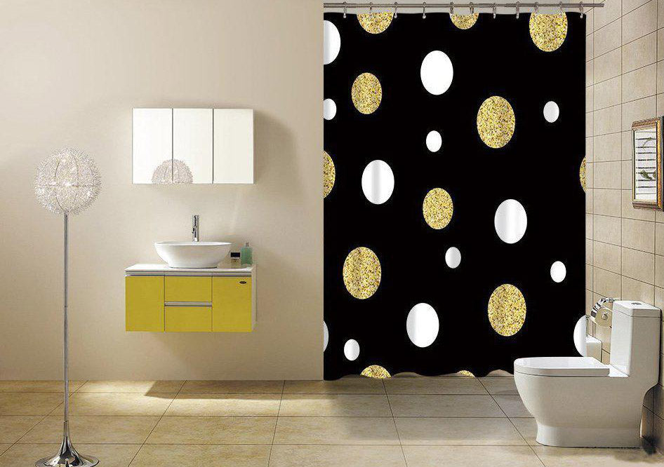 Tenda Doccia Nera a Pois Dorati Glitter: Un Tocco di Glamour per il Tuo Bagno